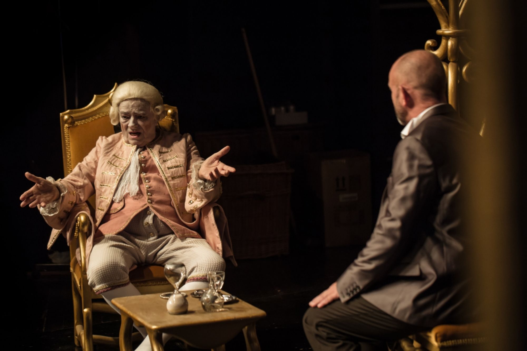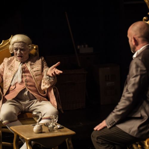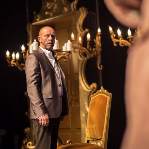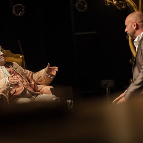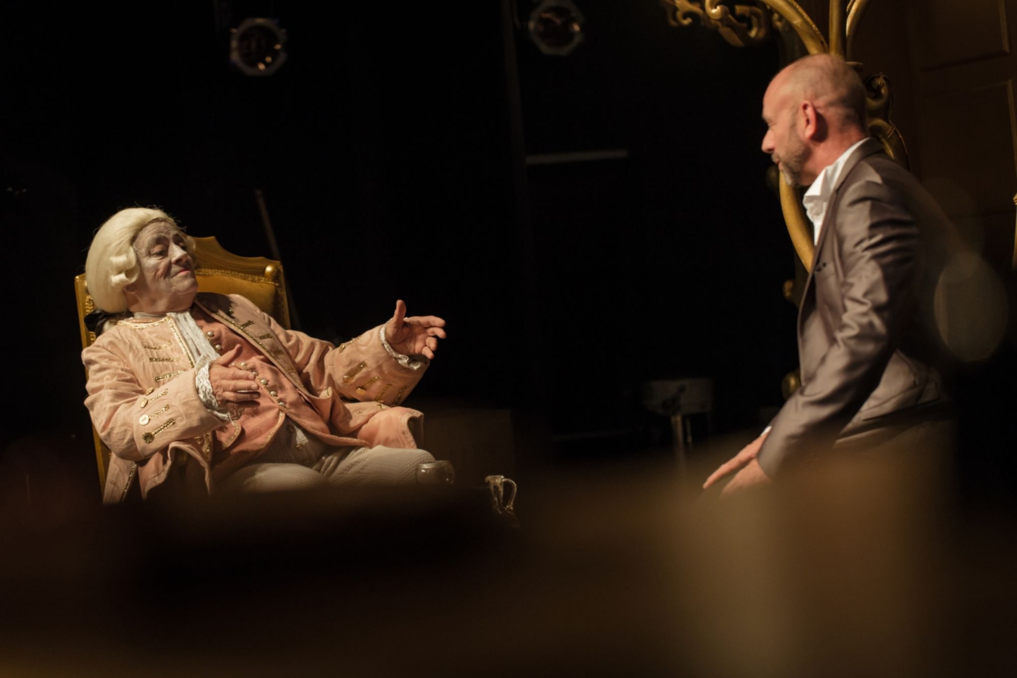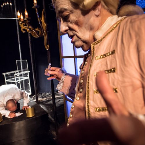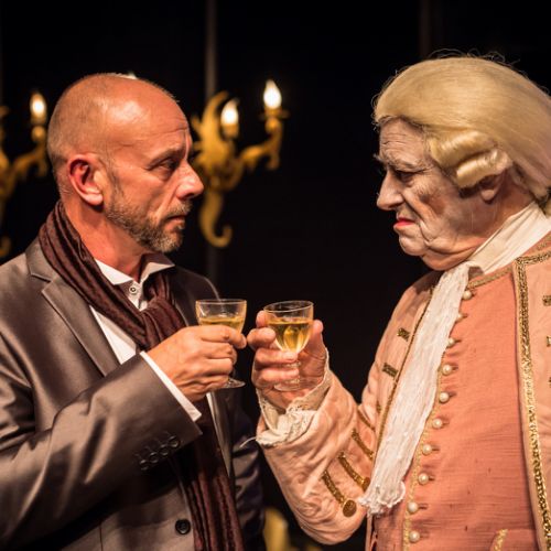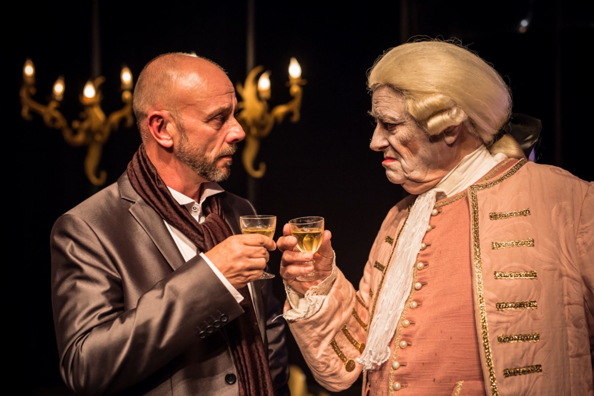 A la lueur des candélabres qu'un domestique allume lentement un à un, le salon apparaît. Entièrement doré. Doré comme l'est la fiction au théâtre. Noir comme pourrait l'être le théâtre s'il se mettait à quitter la fiction pour aller jusqu'au bout de ce qu'il annonce, jusqu'à la lie de son venin. Et ce soir le Marquis misera sur le noir. Gabriel de Beaumont, comédien adulé du public est là (mais il ne le sait pas encore) pour donner au Marquis l'interprétation théâtrale juste et authentique, parfaite et unique.Quand un Marquis sadique attente à la définition même de l'art théâtral, jusqu'où peut être vraie la vérité d'un « grand » comédien, qu'il joue avec sa technique de « vrai professionnel » ou avec sa seule angoisse d'homme ?