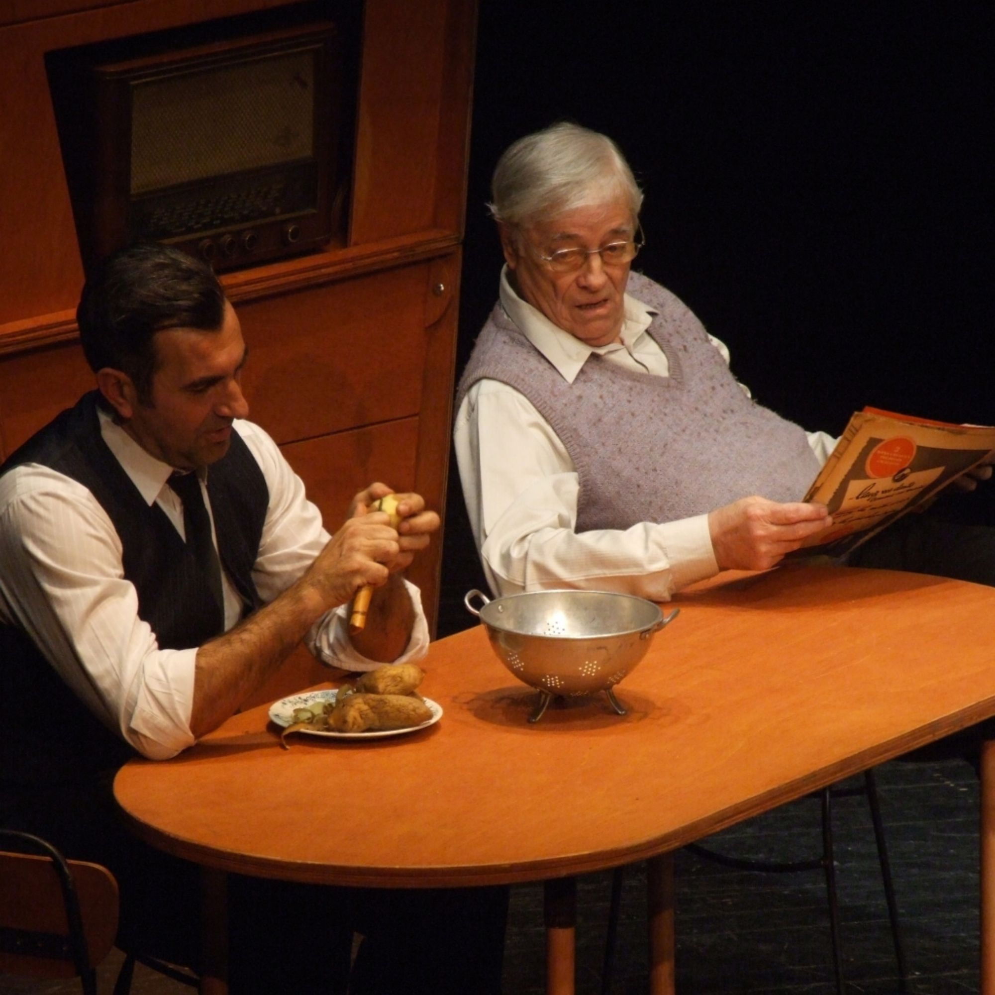 Mise en scène : André Neyton. Assistant mise en scène : Sophie Neyton. Avec : Thierry Belnet, André Neyton. Lumières : Michel Neyton. Costumes : Isabelle Denis. Musique : Miquèu Montanaro. Traduction : Josyane Ferrié. Décor : Franz Merckel