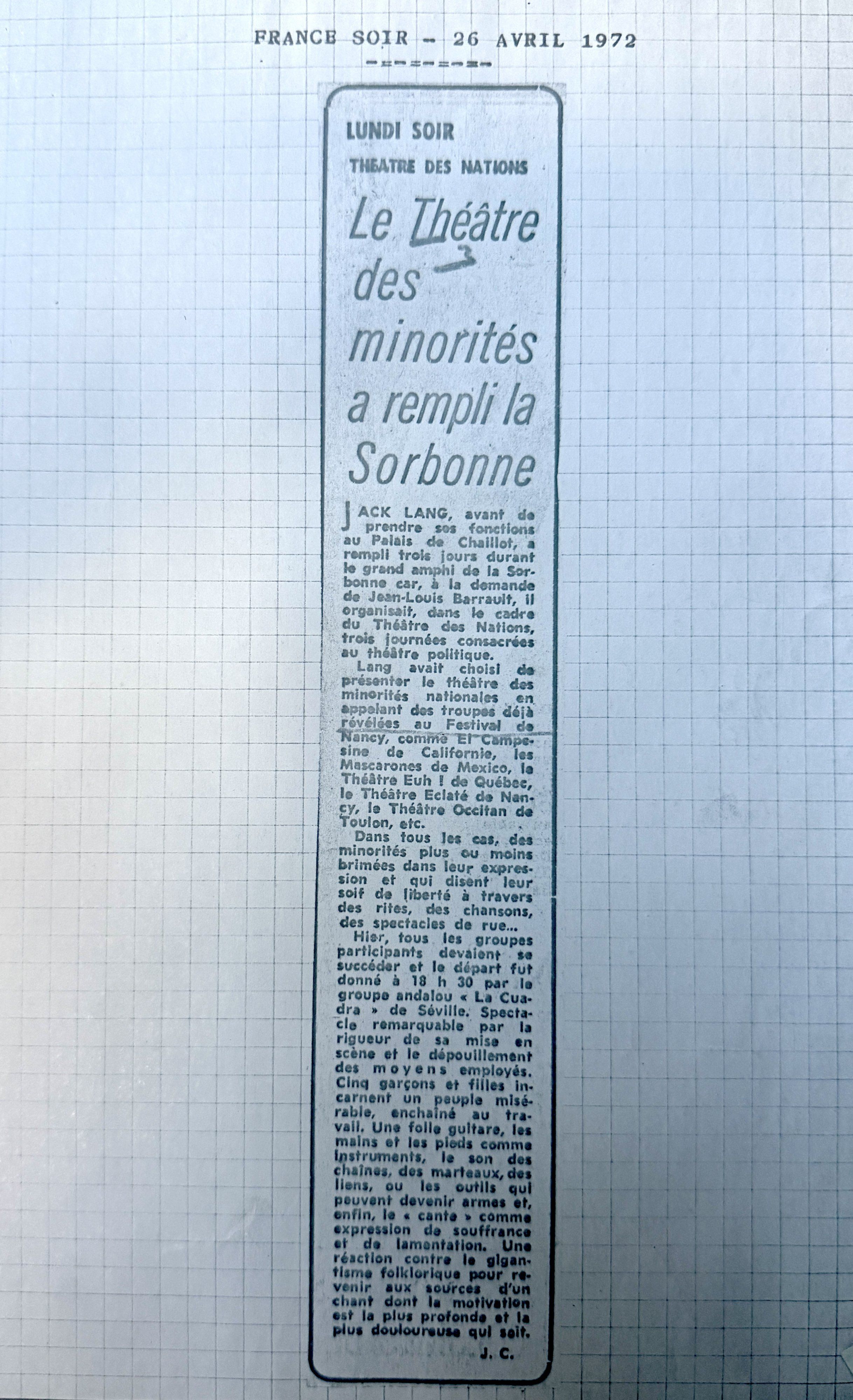Le Théâtre des Minorités a rempli la Sorbonne (France Soir - 1972)