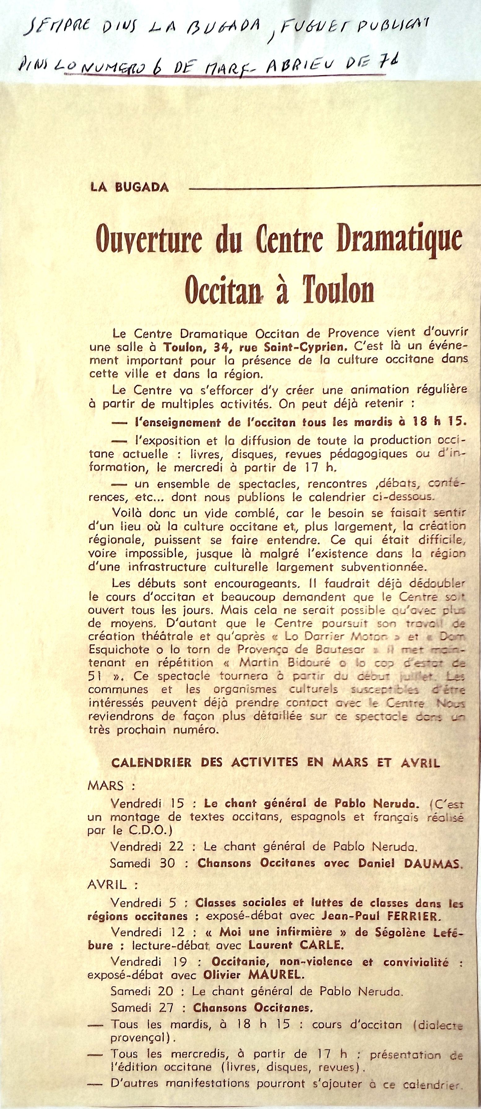 Le Local rue St Cyprien (La Bugada - 1971, La Dépêche 1973)