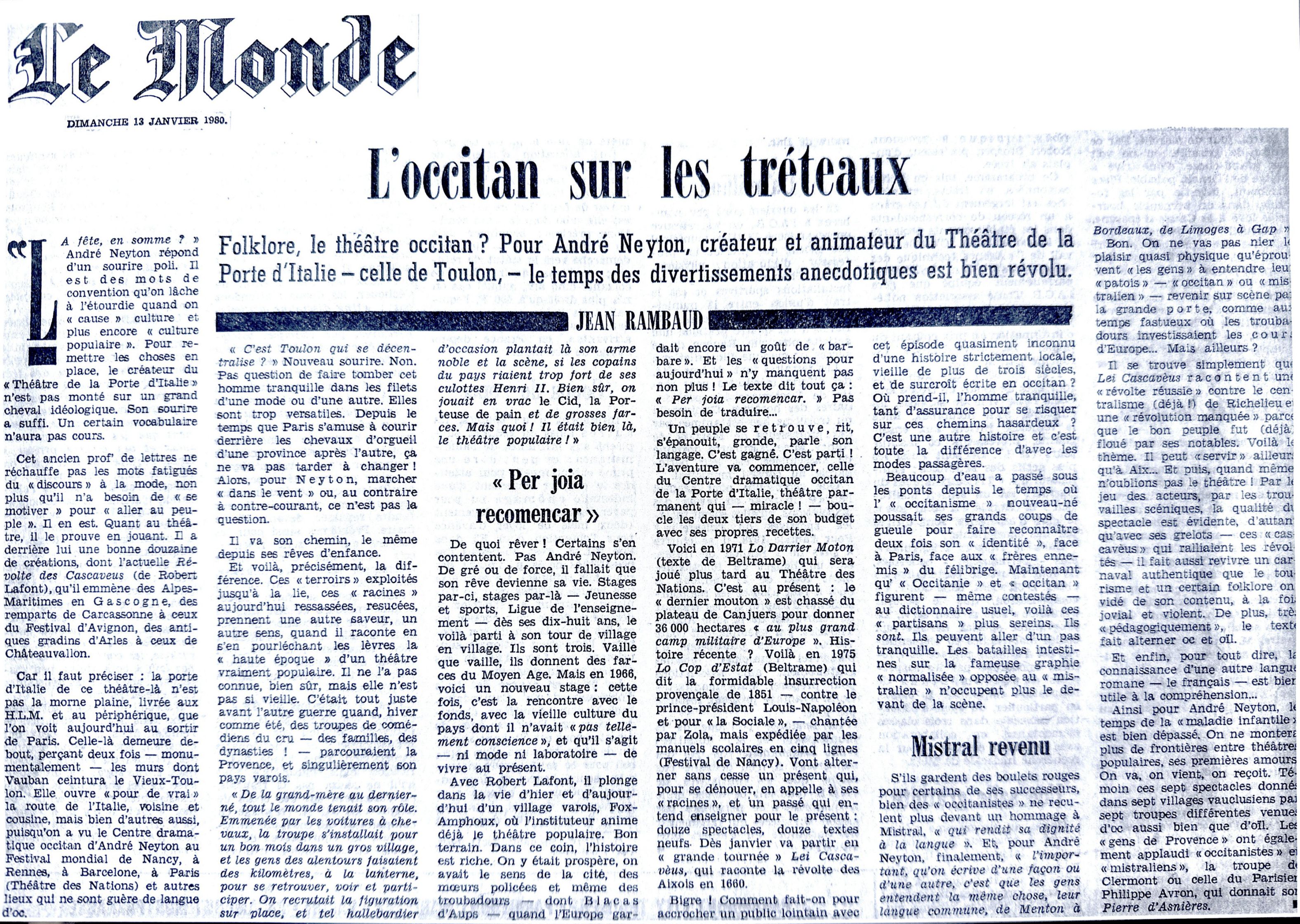 L'Occitan sur les Trétaux (Le Monde - 1980)