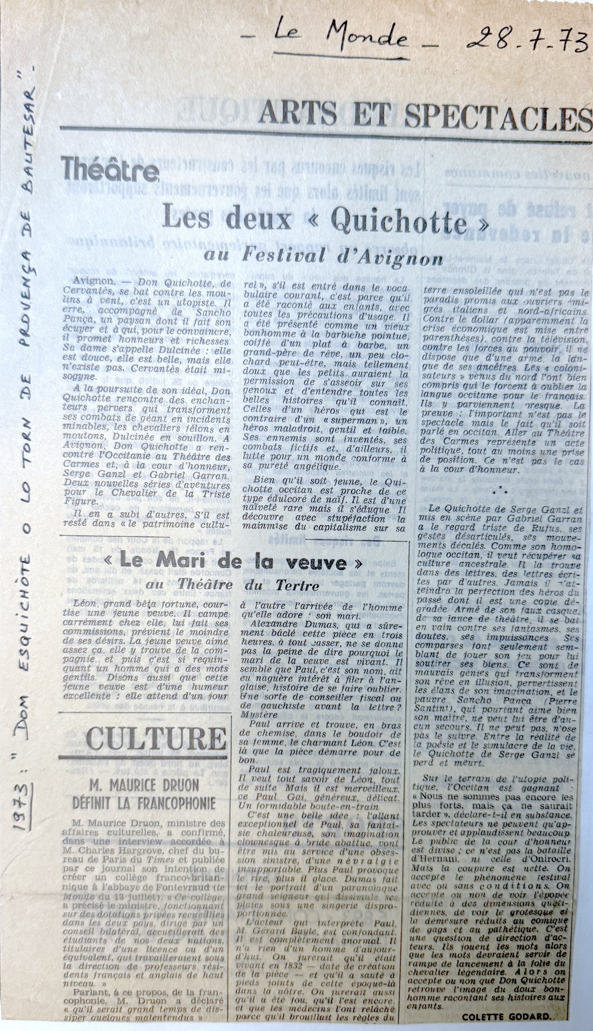 Les deux "Quichotte" au Festival d'Avignon (Le Monde - 1973)