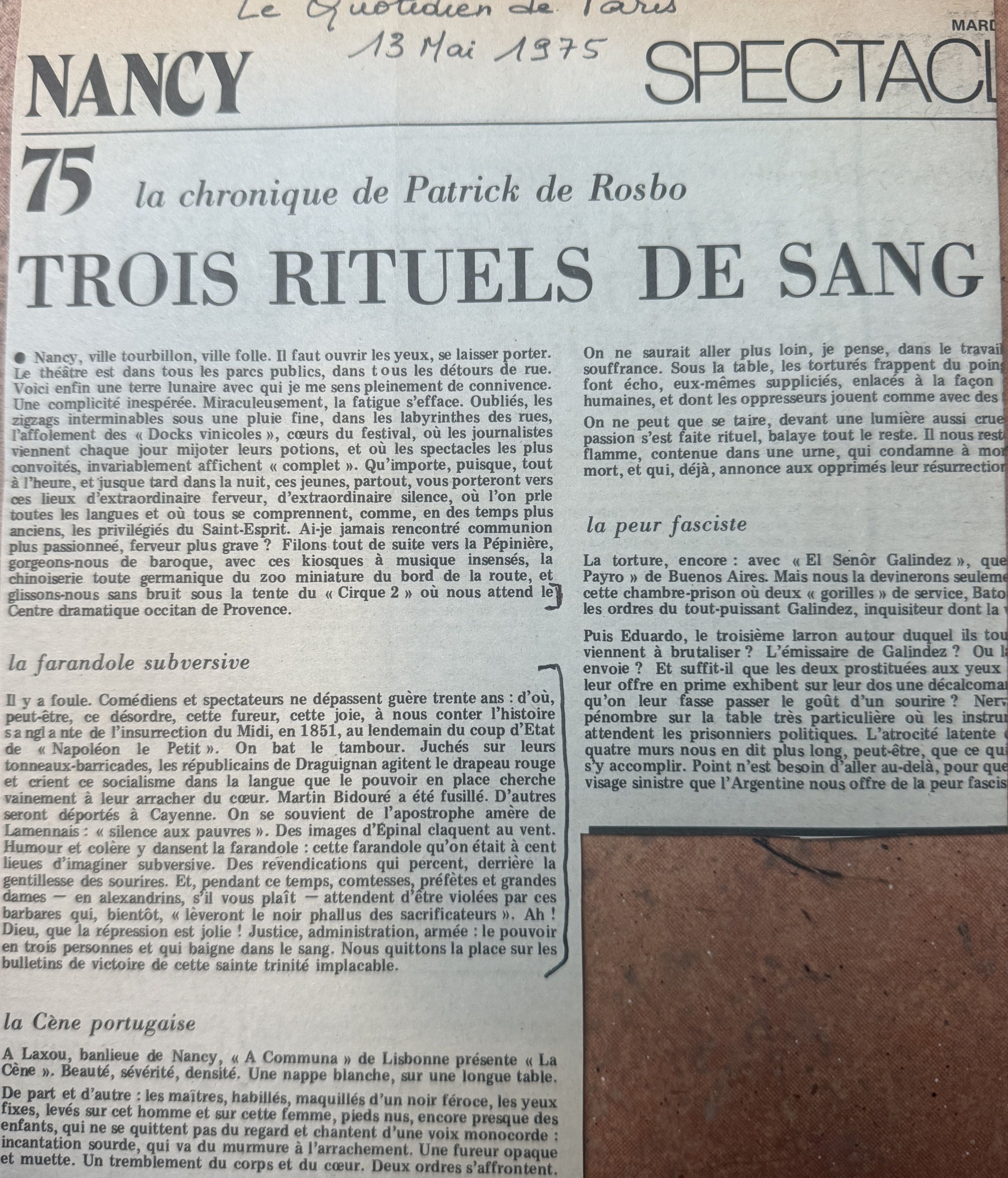 Trois Rituels de sang (Le quotidien de Paris - 1975)