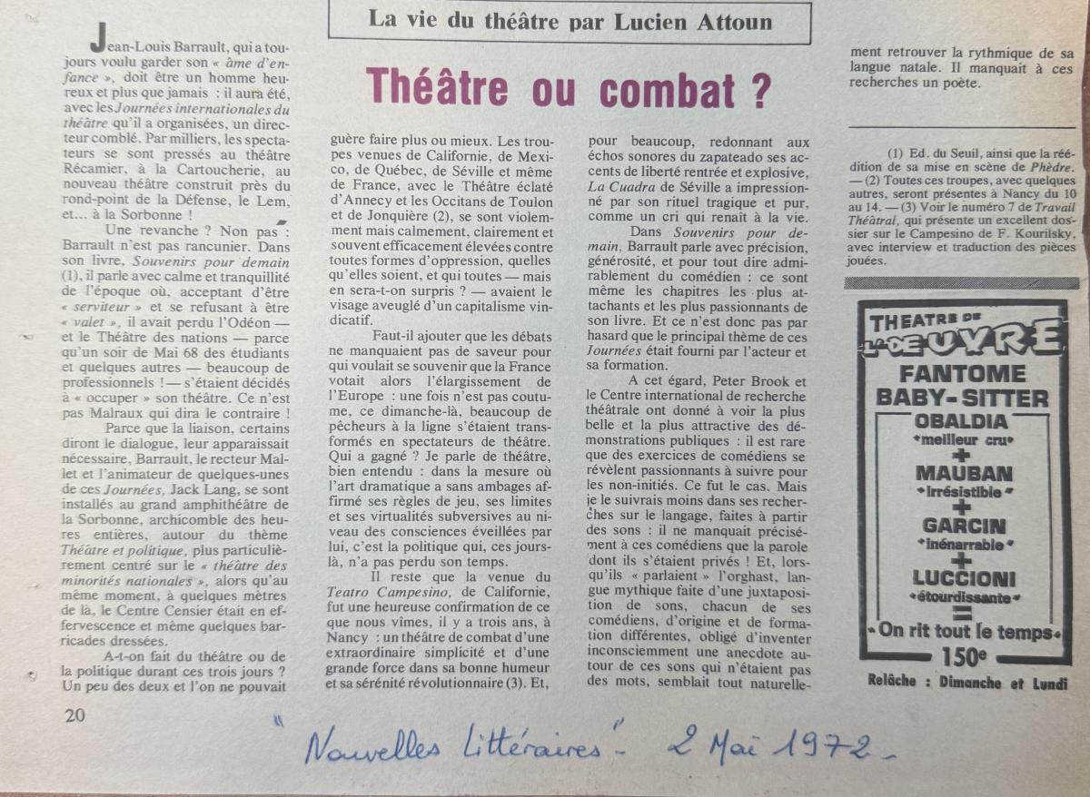 Théâtre ou combat (Nouvelles Llittéraires - 1972)