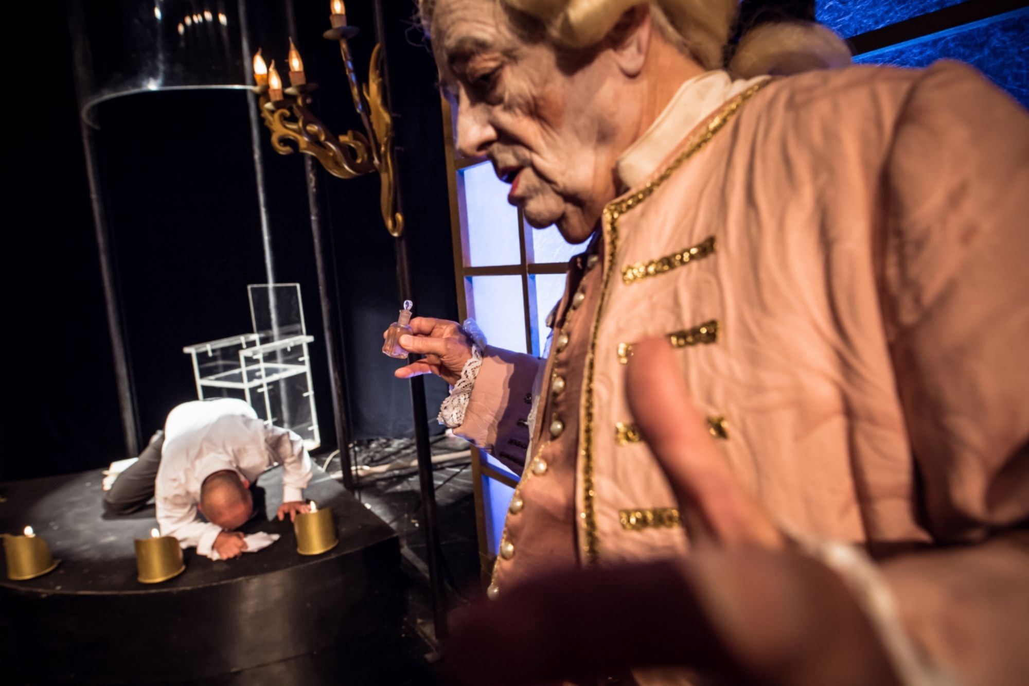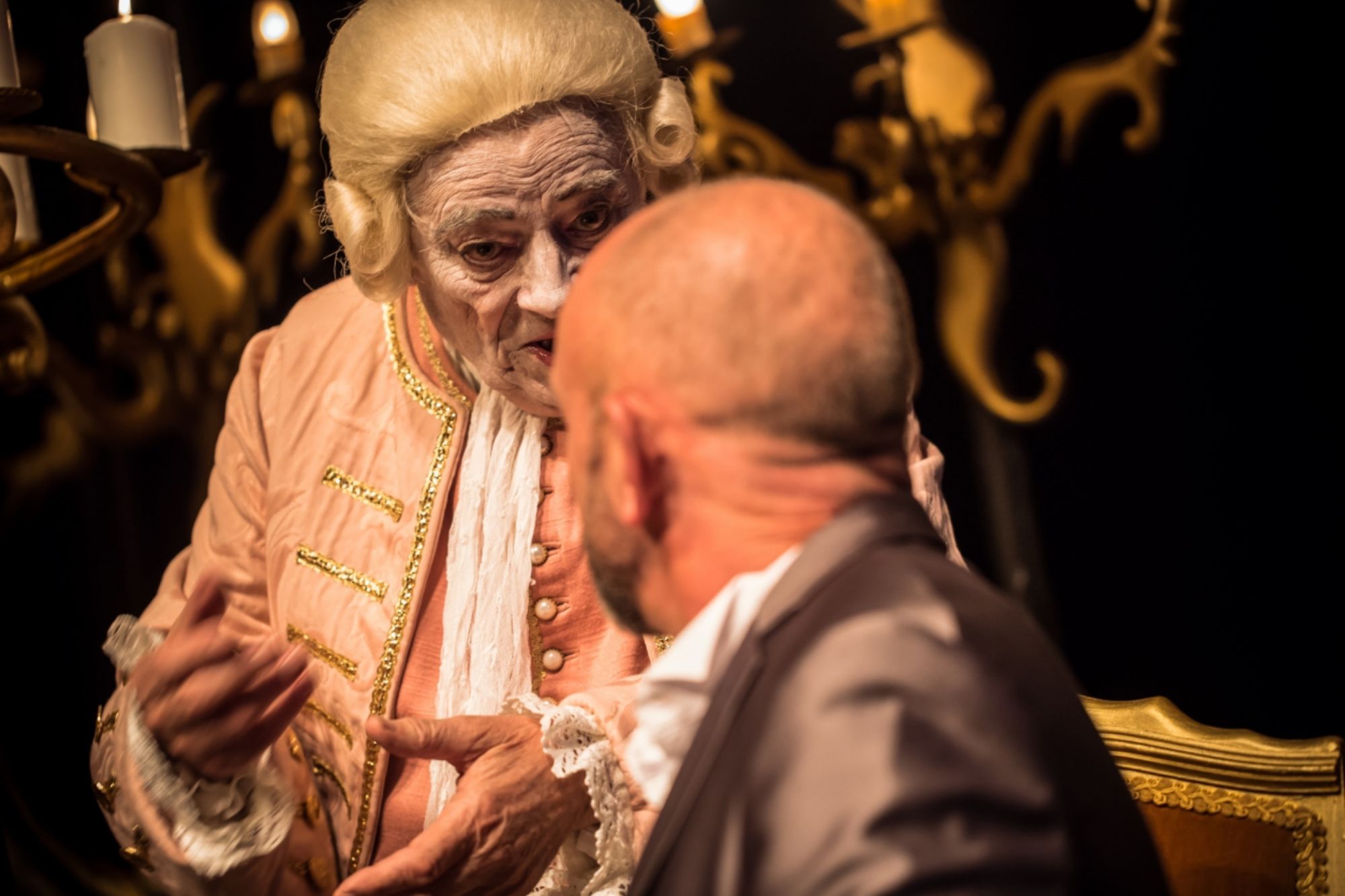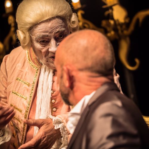 A la lueur des candélabres qu'un domestique allume lentement un à un, le salon apparaît. Entièrement doré. Doré comme l'est la fiction au théâtre. Noir comme pourrait l'être le théâtre s'il se mettait à quitter la fiction pour aller jusqu'au bout de ce qu'il annonce, jusqu'à la lie de son venin. Et ce soir le Marquis misera sur le noir. Gabriel de Beaumont, comédien adulé du public est là (mais il ne le sait pas encore) pour donner au Marquis l'interprétation théâtrale juste et authentique, parfaite et unique.Quand un Marquis sadique attente à la définition même de l'art théâtral, jusqu'où peut être vraie la vérité d'un « grand » comédien, qu'il joue avec sa technique de « vrai professionnel » ou avec sa seule angoisse d'homme ?